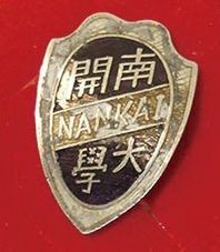 Il logo universitario è nato durante un periodo storico particolarmente carico di frustrazione e progresso spirituale della Scuola Media Nankai. Nel 1917 Tianjin subì una devastante inondazione: a metà settembre, si ruppe l’argine del canale sud e le inondazioni si estesero fino all’area urbana, senza risparmiare la Scuola Media Nankai. Sotto la guida del direttore pro tempore Zhang Pengchun e grazie agli sforzi congiunti di tutto lo staff e degli studenti, la Scuola si trasferì prima presso l’Associazione dei Giovani in via Dongmalu e poi presso il Collegio di Scienze Politiche e Giurisprudenza dell’Hebei. Zhang Pengchun tenne un discorso durante la cerimonia di apertura dell’anno accademico: “Gli studenti vivono nello spirito, non nella scuola. Lo spirito dei miei docenti e studenti è rimasto lì. Chi ha perso la vita nell’alluvione non mi impedirà di andare avanti!” Il discorso fu molto incoraggiante. Durante quel difficile periodo, ogni studente di Nankai indossava sul petto un logo temporaneo fatto di carta bianca e viola per ricordare sempre a sé stesso che i membri della Scuola Media dovevano coltivare la propria volontà e valorizzare lo spirito educativo. I docenti e gli studenti non poterono tornare al campus fino al luglio dell’anno successivo. A partire da quel momento si decise di organizzare, il 23 settembre di ogni anno, un “Evento commemorativo dell’alluvione” nel refettorio. Seduti a tavola, intenti a mangiare porridge, gli studenti indossavano sul petto una spilla bianca e viola con la scritta “Nankai”. Questo è lo stesso logo di allora, ma è stata aggiunta una piccola scritta: